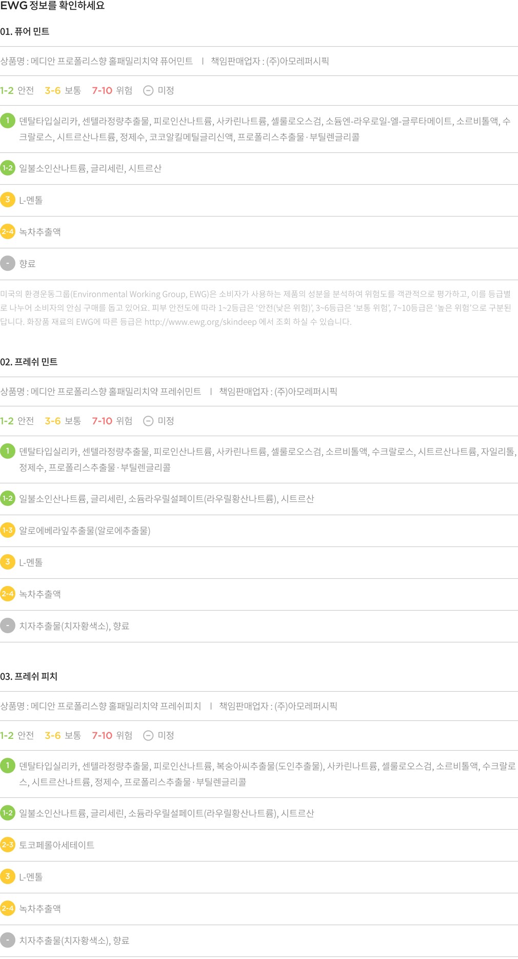 01. 퓨어 민트 ・ 중량 : 1세트(100gX3개입)