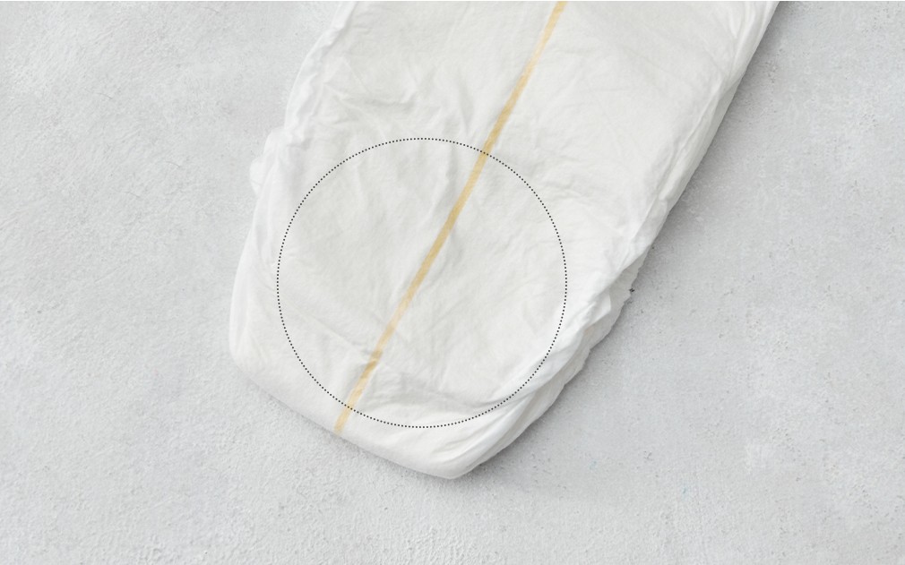 소변 알림선 안내 ・기저귀에 소변 알림선이 있어요. 연한 노란 선이 선명한 초록색 또는 파란색으로 바뀌면 기저귀를 교체해주세요.