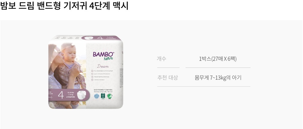 [밤보드림] 밴드형 기저귀 4단계 맥시 (27매 x 6팩)(장당: 550원)