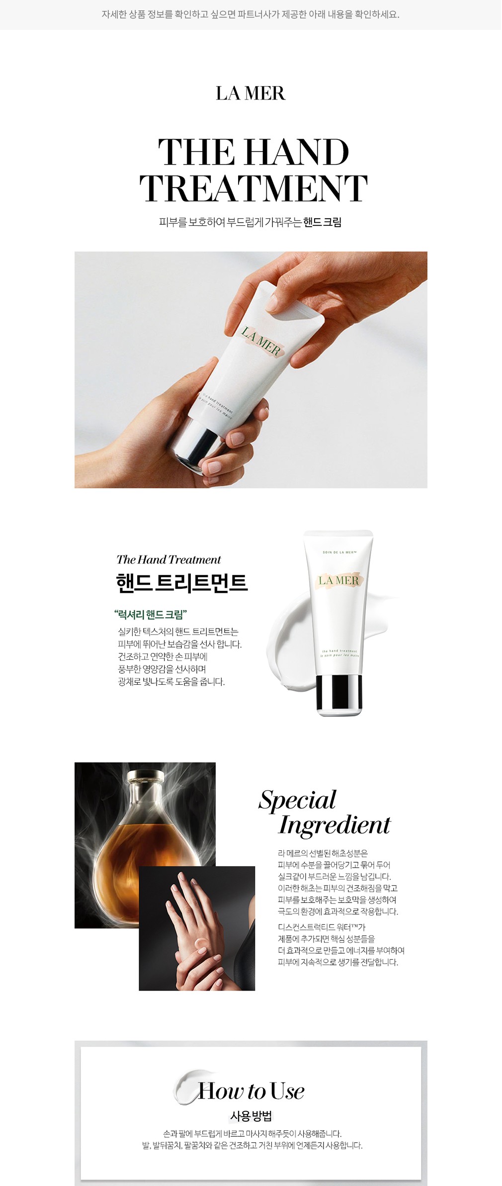 ・ 특징 : 깊은 보습감으로 건조한 손을 부드럽고 촉촉하게 케어해줍니다.