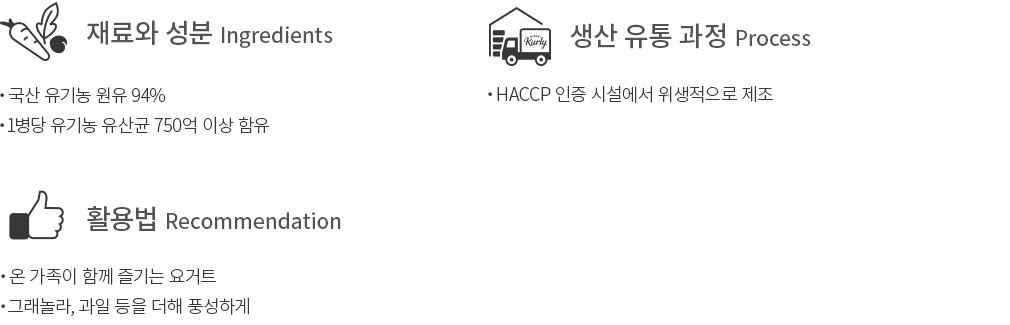 국내 최초* 유기농 유산균으로 만든 유기농 함량 100% 요거트, 상하목장의 유기농 드링킹 요거트를 소개할게요. 국산 유기농 원유에 유기농 유산균을 함유해 온 가족이 안심하고 즐길 수 있어요. 여기에 유기농 설탕과 유기농 아가베식이섬유로 은은한 단맛을 더했죠. 유기농 원유 본연의 고소한 풍미를 살리면서도 부드러운 질감으로 완성해 누구나 부담 없이 드실 수 있답니다. 그대로 즐기는 것은 물론, 그래놀라나 과일을 더해 간단한 아침으로 활용해도 참 좋을 거예요.