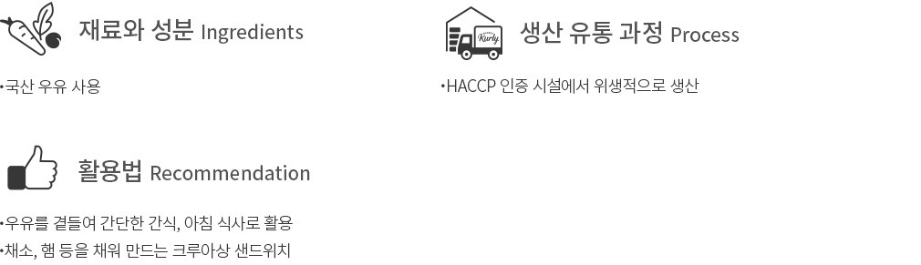 - 우유, 밀, 계란 함유 - 본 제품은 대두, 호두, 돼지고기, 쇠고기, 이산화황을 사용한 제품과 같은 제조시설에서 제조하고 있습니다.