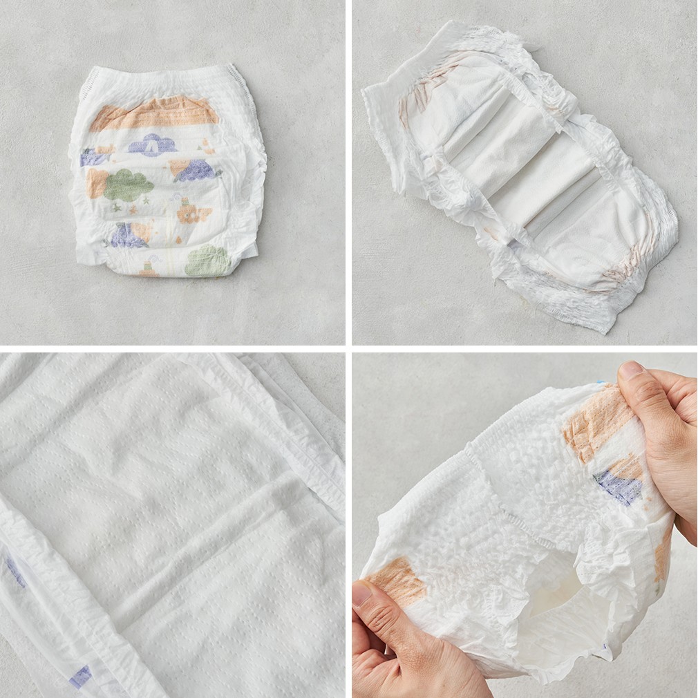 유의사항 ・간혹 아이의 활동량과 몸무게에 따라 고분자흡수체(SAP)가 방수층을 뚫고 새어 나올 수 있으나, 피부에 닿아도 해가 되지는 않아요. 몸에 묻은 흡수체는 미온수로 깨끗하게 씻어주세요.