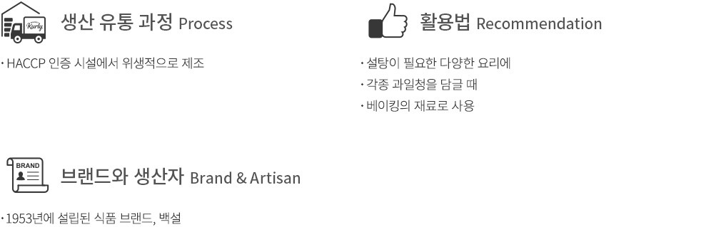 ・특징 : 각종 요리나 과일청 등 다양하게 활용하기 좋은 설탕입니다.