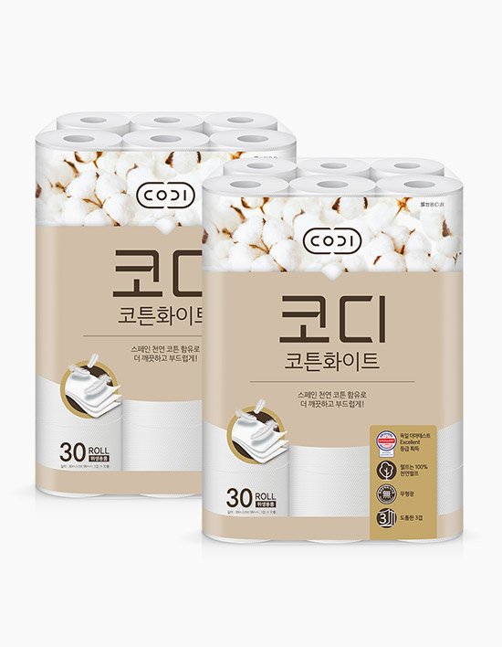 [코디] 3겹 천연펄프 코튼화이트 화장지 (30m X 30롤 X 2팩)