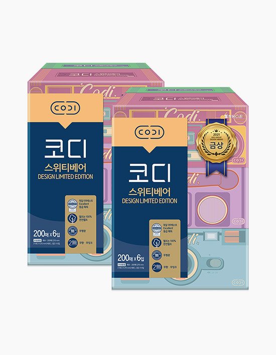 [코디] 2겹 천연펄프 스위티베어 미용티슈 (200매 X 6입 X 2팩) (.)