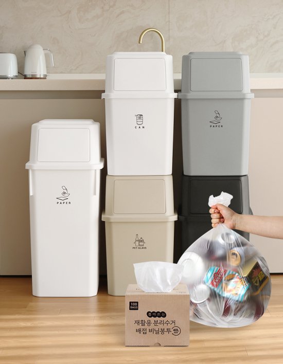 [네이쳐리빙] 모노블 재활용 분리수거함 & 티슈형 분리수거 배접 비닐봉투 세트 2종(택1)