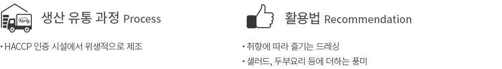 ・활용팁 : 샐러드 드레싱은 물론 다양한 튀김에 곁들이는 디핑 소스로 활용해 보세요.