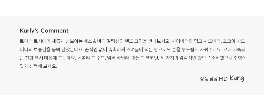 ・ 특징 : 플로럴 구어망드 향조의 핸드 크림입니다. 우아한 플로럴 향에 달달한 앰버와 바닐라 향이 더해졌어요.