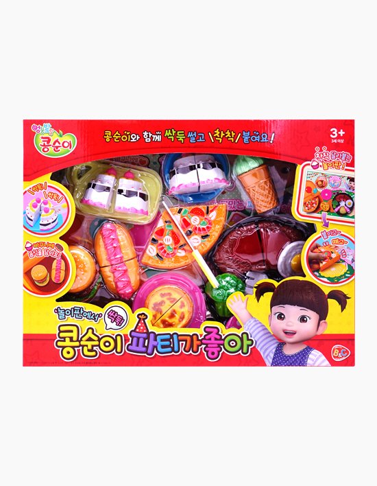 파티 음식과 베이커리 놀이를 하며 싹둑 썰고 역할놀이 가능한 콩순이