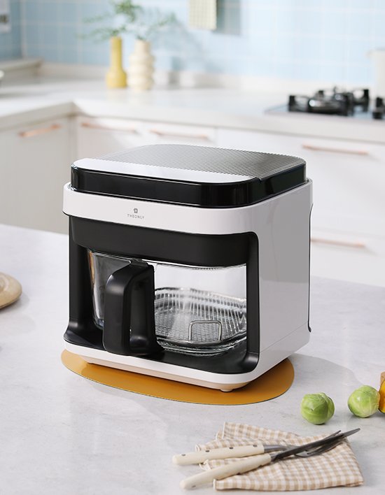 [디온리] 저소음 5.5L 투핸들 글라스 큐브 대용량 에어프라이어 광파 오븐