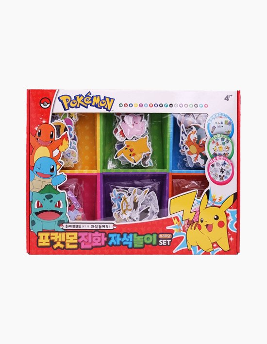 화이트 보드판에 포켓몬 캐릭터 및 한글로 구성된 자석놀이