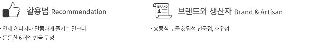 호우섬은 기본에 충실한 홍콩 요리, 자연스러운 현지 일상식을 선보이는 레스토랑인데요. 이번엔 호우섬이 만든 홍콩 밀크티를 소개할게요. 홍콩에서 마셨던 부드럽고 달콤한 밀크티 맛을 그대로 재현해냈답니다. 얼그레이 홍차 분말을 넣어 얼그레이 특유의 향긋함이 잘 살아있어요. 든든하게 드실 수 있도록 6개를 보내드리니 달콤한 밀크티가 끌릴 때마다 즐겨 보세요.