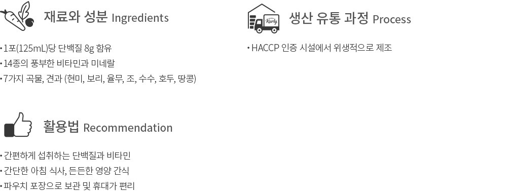 - 우유, 대두, 땅콩, 호두 함유 - 본 제품은 달걀, 복숭아, 토마토를 사용한 제품과 같은 제조시설에서 제조하고 있습니다.