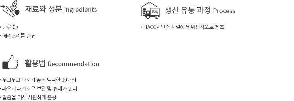 * 이 제품은 알류, 우유, 땅콩, 대두, 밀, 복숭아, 아황산류, 호두, 메밀, 토마토를 사용한 제품과 같은 제조시설에서 제조하고 있습니다.