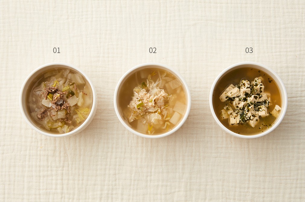 - 소고기콜라비맑은국: 소고기, 밀, 대두 함유 - 이 제품은 난류, 우유, 땅콩, 대두, 밀, 고등어, 게, 새우, 돼지고기, 복숭아, 토마토, 아황산류, 호두, 닭고기, 쇠고기, 오징어, 조개류를 사용한 제품과 같은 제조 시설에서 제조하고 있습니다. - 닭곰탕: 닭고기, 대두, 밀 함유 - 이 제품은 난류, 우유, 땅콩, 대두, 밀, 고등어, 게, 새우, 돼지고기, 복숭아, 토마토, 아황산류, 호두, 닭고기, 쇠고기, 오징어, 조개류를 사용한 제품과 같은 제조 시설에서 제조하고 있습니다. - 미소미역된장국: 밀, 대두 함유 - 이 제품은 난류, 우유, 땅콩, 대두, 밀, 고등어, 게, 새우, 돼지고기, 복숭아, 토마토, 아황산류, 호두, 닭고기, 쇠고기, 오징어, 조개류를 사용한 제품과 같은 제조 시설에서 제조하고 있습니다.