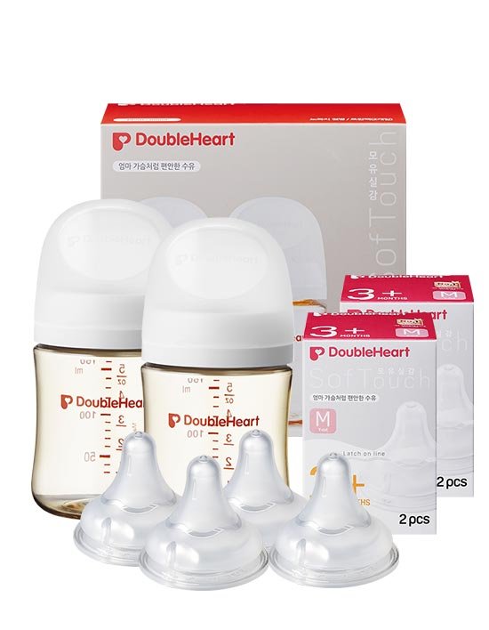 [더블하트] 3세대 160ml 베이직 트윈팩(젖병2개) + 젖꼭지 4개