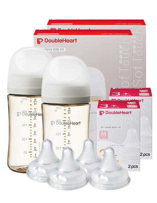 [더블하트] 3세대 240ml 모먼트 트윈팩2개(젖병4개) + 젖꼭지4개