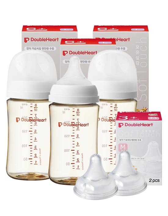 [더블하트] 3세대 240ml 베이직 젖병3개(젖꼭지포함) +젖꼭지2개