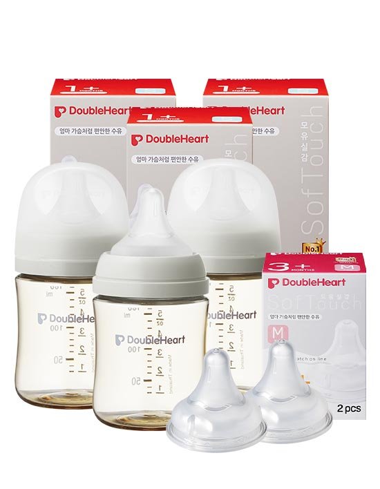 [더블하트] 3세대 160ml 모먼트 젖병3개(젖꼭지S 포함) +젖꼭지2개
