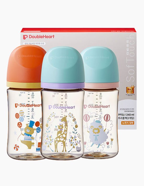 [더블하트] 모유실감 3세대 PPSU 디어프렌즈 240ml 트리플팩 (노꼭지)