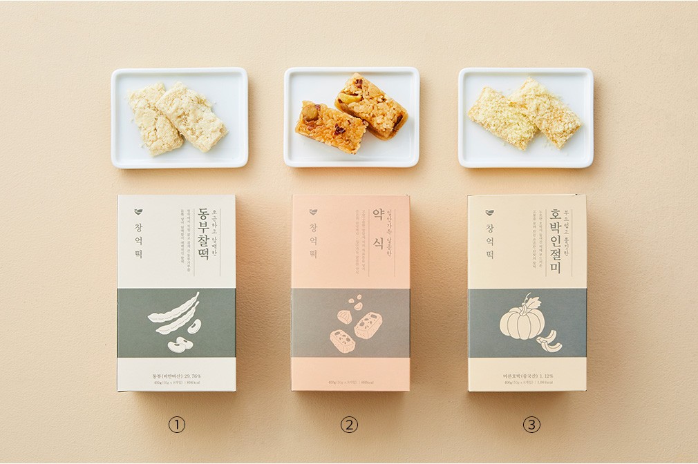 창억 정성담은 선물세트 ・ 구성 : ①동부 찰떡, ②약식, ③호박 인절미