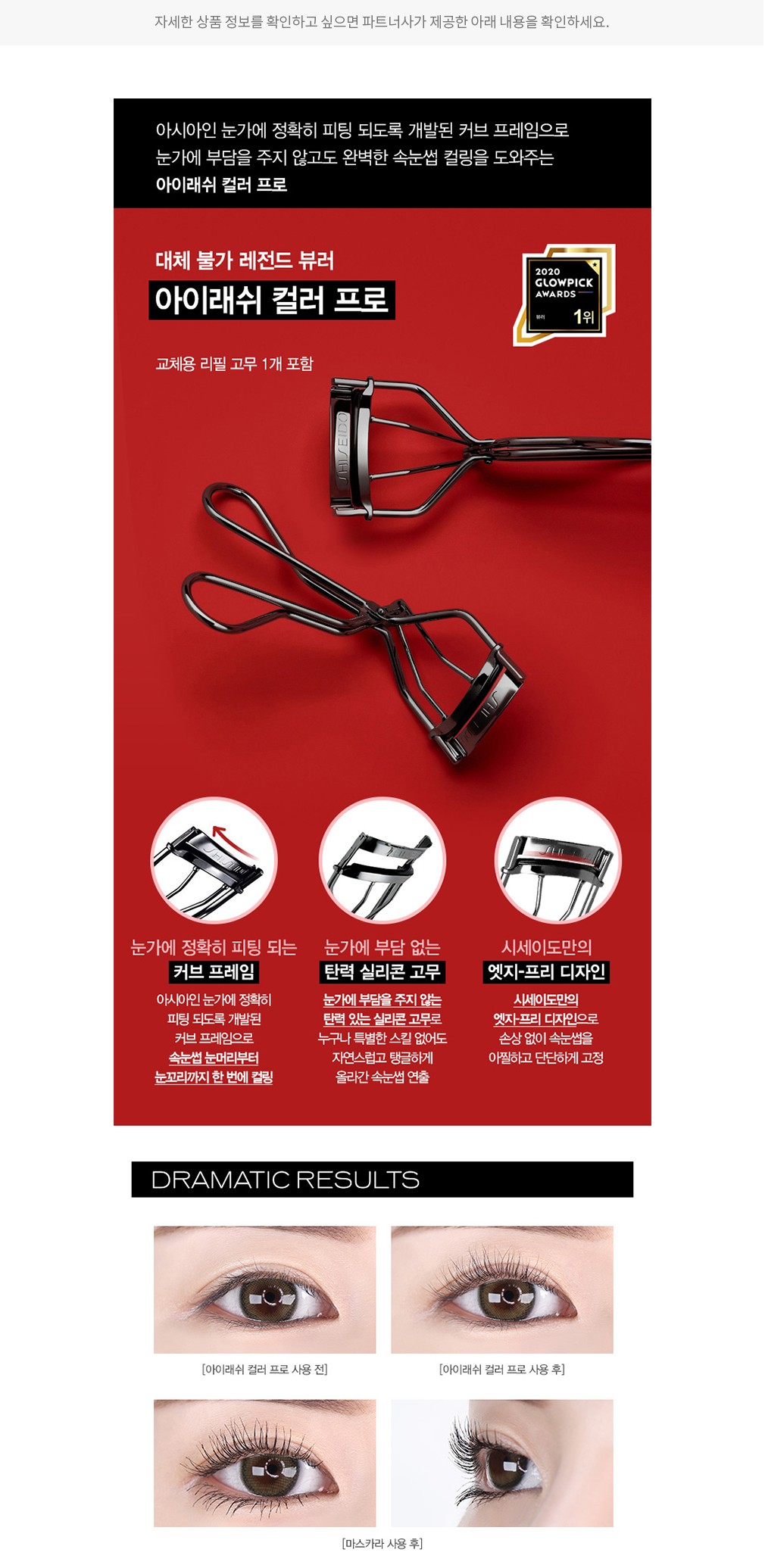 사용법 ・ 속눈썹 뿌리부터 바깥쪽으로 가볍게 여러 번 나누어 컬링해주세요.