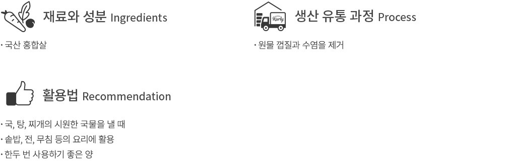 - 조개류(홍합)함유 - 이 상품은 알러지 유발물질인 새우,오징어,꽃게,조개류(굴,전복 포함)를 사용한 제품과 같은 시설에서 제조하고 있습니다.