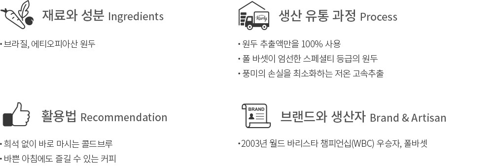 늦은 밤에도 희석 없이 바로 마실 수 있는 콜드브루를 찾고 있다면, 폴바셋의 콜드브루 디카페인을 만나보세요. 폴 바셋이 까다롭게 엄선한 브라질, 에티오피아산 원두를 사용했는데요. 저온 고속추출으로 원두 풍미의 손실을 최소화했답니다. 오로지 원두 추출액만을 담았기에 맛과 향을 제대로 만끽할 수 있지요. 바쁜 아침에도 여유로운 커피 타임을 즐겨 보세요.