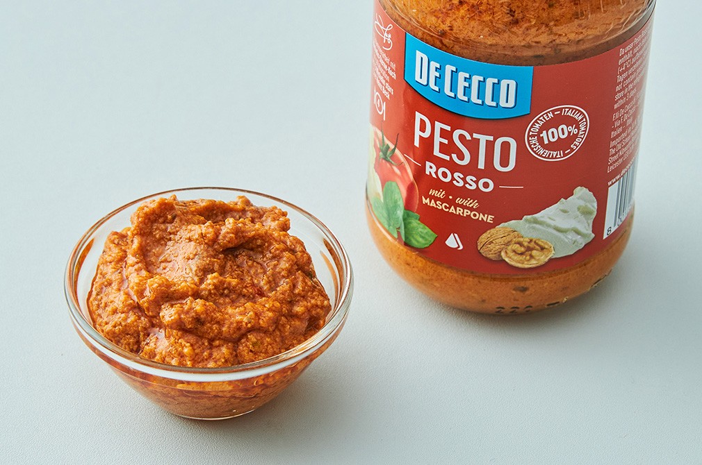 130년의 전통을 자랑하는 이탈리아 브랜드, 데체코의 로쏘 마스카포네 페스토를 만나 보세요. 미슐랭 3스타 셰프로 유명한 하인즈 벡(Heinz Beck)과 함께 만든 소스랍니다. 토마토 과육과 바질 올리브 오일에 마스카포네, 그라노 파다노, 페코리노 로마노 치즈를 블렌딩해 완성했는데요. 토마토 특유의 산뜻함과 함께 3가지 치즈의 깊고 부드러운 풍미가 어우러져 독보적인 매력을 자랑해요. 파스타, 리조또는 물론, 카나페의 스프레드로도 잘 어울리니 다양하게 즐겨 보세요.