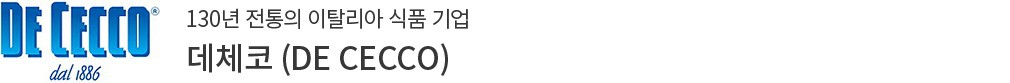 데체코는 130년 전통의 이탈리아 식품 기업입니다. 우수한 품질의 세몰리나만을 사용하여 약 160여 종의 파스타를 생산하고 있는 브랜드로 유명하지요. 데체코는 파스타면 외에도 여러 요리에 활용하기 좋은 소스도 생산하고 있습니다. 원재료의 풍미를 한껏 끌어올리는 레시피와 제조방식을 통해 누가 사용해도 균일한 감칠맛을 낼 수 있죠. 데체코의 여러 제품으로 간편하게 정통 이탈리아식 식탁을 차려보는 것은 어떨까요?