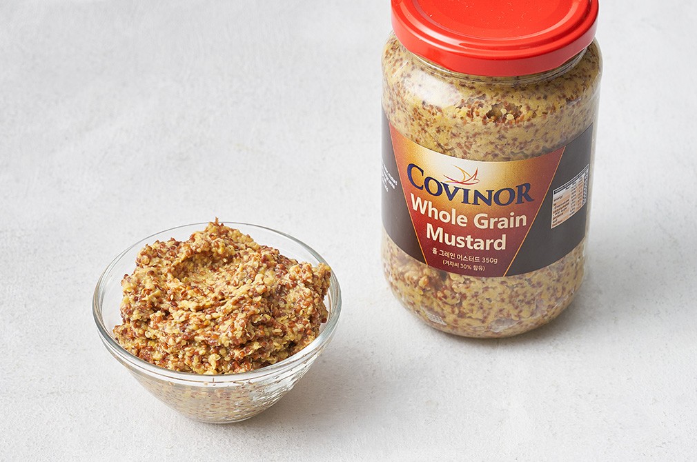 산뜻하게 입맛을 돋우어주는 코비노의 홀그레인 머스타드를 소개합니다. 겨자씨에 주정식초와 와인식초를 블렌딩해 완성한 제품이에요. 기분 좋게 새콤하면서도 알싸한 풍미가 매력적이랍니다. 겨자씨가 톡톡 씹혀 재미난 식감까지 즐길 수 있죠. 넉넉한 용량으로 준비했으니 스테이크, 소시지 등의 육류 요리에 곁들이거나 샌드위치, 샐러드 드레싱 등에 활용해 보세요.