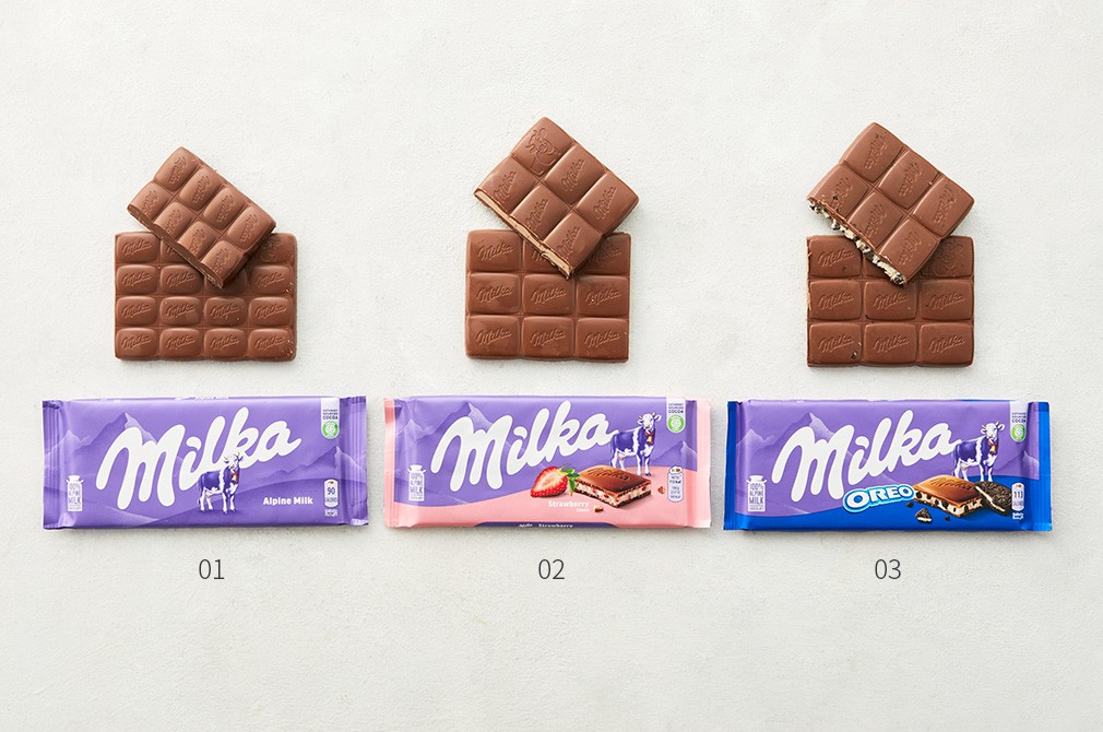 부드러운 풍미의 초콜릿을 꼽자면 밀카를 빼놓을 수 없죠. 밀카에서 가장 사랑 받는 세 가지 초콜릿을 준비했답니다. 우유의 고소한 맛을 그대로 간직한 알프스 밀크부터, 달콤한 쿠키가 콕콕 박힌 오레오 밀크까지 준비했어요. 한 번에 먹기 좋은 사이즈의 초콜릿이니, 가방에 넣어다니며 언제 어디서나 달콤함을 만끽해 보세요.