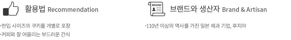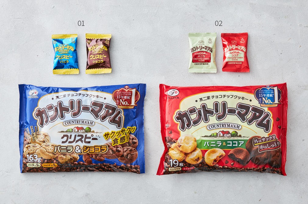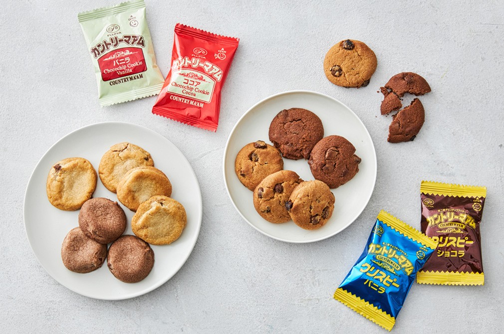 페코짱 캐릭터로 널리 알려진 일본의 제과 기업, 후지야의 컨트리맘 쿠키를 소개합니다. 이미 일본에서는 오랜 시간 동안 꾸준히 사랑받아 온 제품인데요. 쿠키 속에 초코칩이 콕콕 박혀 있어 달콤함을 한층 살린 것은 물론, 2가지 맛을 개별 포장해 하나씩 골라 즐기기에도 좋아요. 부드러운 식감을 살린 바닐라&코코아, 바삭한 식감이 매력적인 바닐라&쇼콜라 2가지 종류 중 취향에 따라 선택해 보세요.