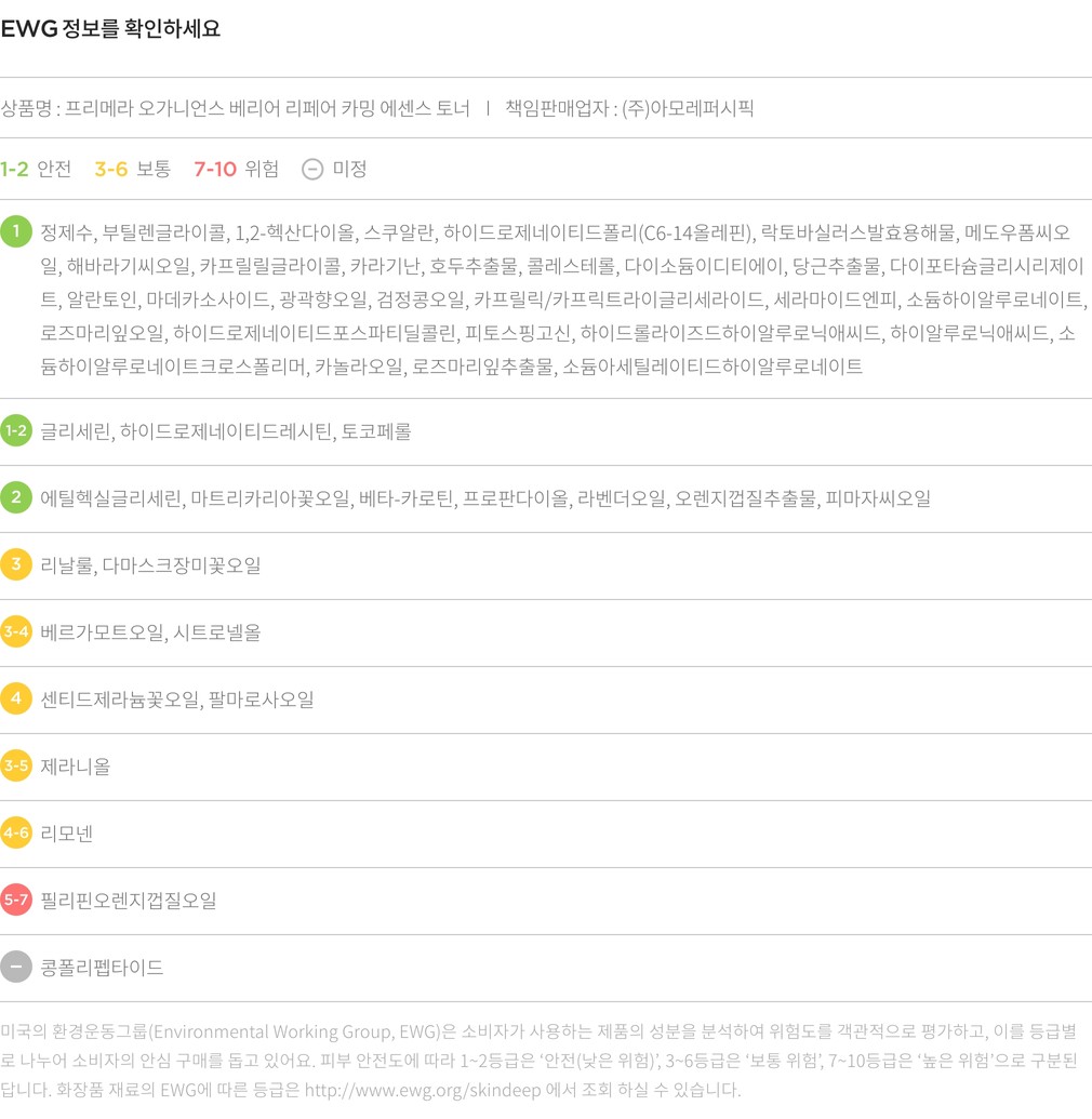 [프리메라] 오가니언스 베리어 리페어 카밍 에센스 토너 160ml
