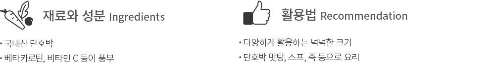 자연스러운 단맛이 매력적인 단호박은 씨를 발라내고 나면 과육이 많이 남지 않아 금방 다 먹기 마련이죠. 적은 과육의 양에 아쉬움을 느꼈던 분이라면 킹 단호박을 만나 보세요. 큼지막한 사이즈로 눈길을 사로잡는 킹 단호박은 하나만 있어도 든든하답니다. 일반 단호박에 비해 당도가 높고 과육이 포슬포슬해서 찜기에 간단히 쪄 먹기만 해도 훌륭한 간식이 되고요. 에그슬럿, 스프, 죽 등으로 다양하게 요리해 먹어도 좋아요.