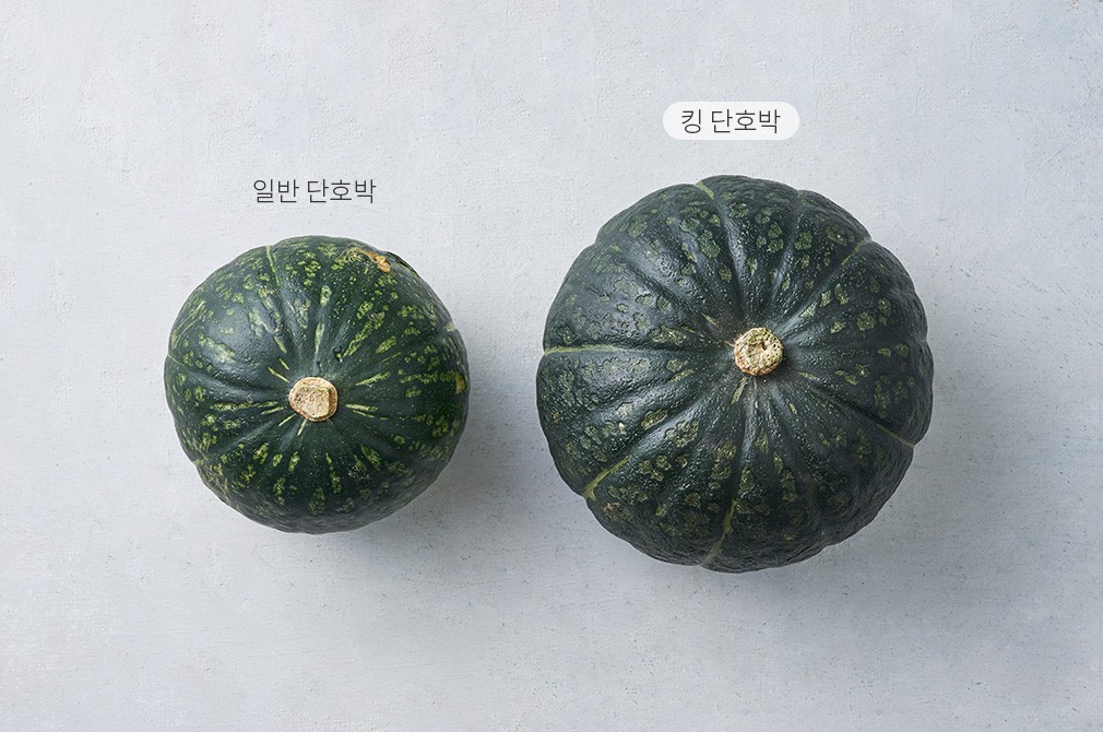 크기를 확인하세요 ・ 킹 단호박은 일반 단호박보다 사이즈가 크고 과육이 두껍다는 점 알려드려요.