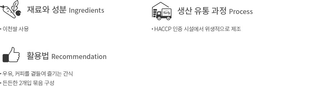 쌀크림빵, 팥쌀크림빵, 옥수수쌀크림빵, 밤쌀크림빵, 흑임자쌀크림빵, 말차쌀크림빵 : 계란, 우유 함유 인절미쌀크림빵 : 계란, 대두, 우유 함유 초코쌀크림빵 : 헤이즐넛, 계란, 대두, 우유 함유 -이 제품은 대두, 돼지고기, 땅콩, 밀, 복숭아, 오징어, 아황산류, 호두, 토마토를 사용하는 제품과 같은 제조시설에서 제조