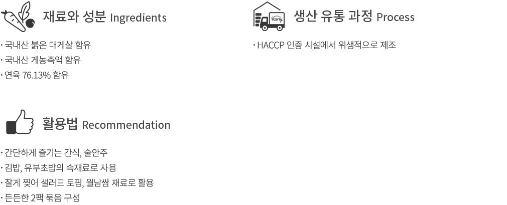 - 밀, 게, 대두, 토마토 함유 - 알류, 우유, 새우, 쇠고기, 돼지고기, 오징어, 닭고기, 조개류, 고등어를 사용한 제품과 같은 제조시설에서 제조.