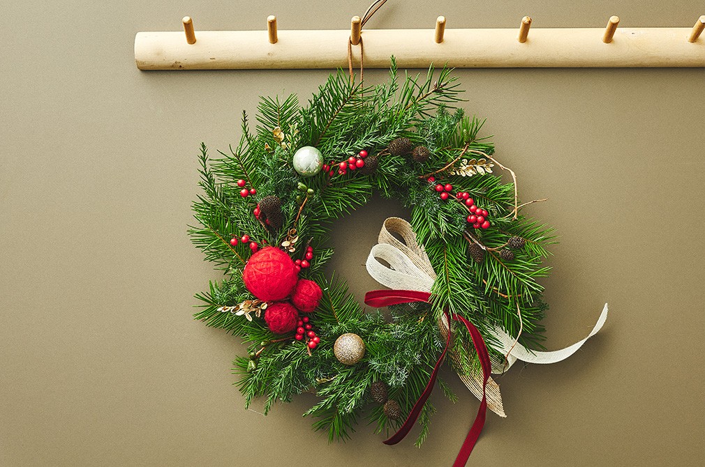 빨간 레드볼이 달린 화사한 크리스마스 리스가 당신의 크리스마스 기분을 가득 채워 줄 거에요.