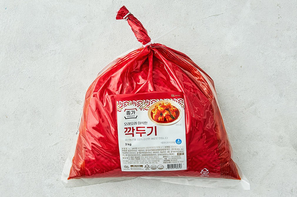 든든하게 구비해 두는 김치, 종가로 선택해 보세요. 이번에는 아삭아삭한 식감이 매력적인 깍두기를 준비했어요. 엄선한 무를 소금에 알맞게 절여 경쾌한 식감을 알맞게 유지했고요. 한입에 쏙 들어가는 크기로 잘라 만들었기에 더욱 간편하답니다. 제법 넉넉한 3kg 용량으로 보내드리니, 온 가족 반찬이 필요할 때마다 국물까지 듬뿍 퍼올려 담아보세요.