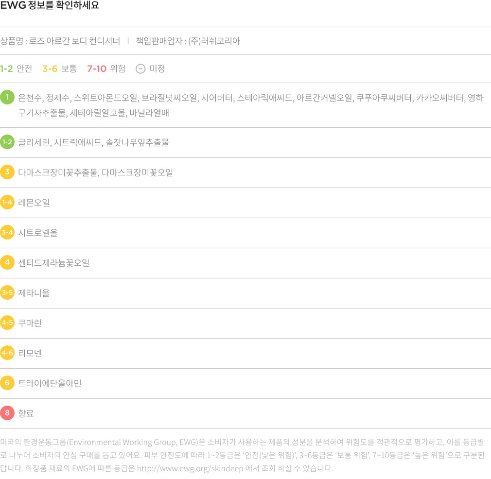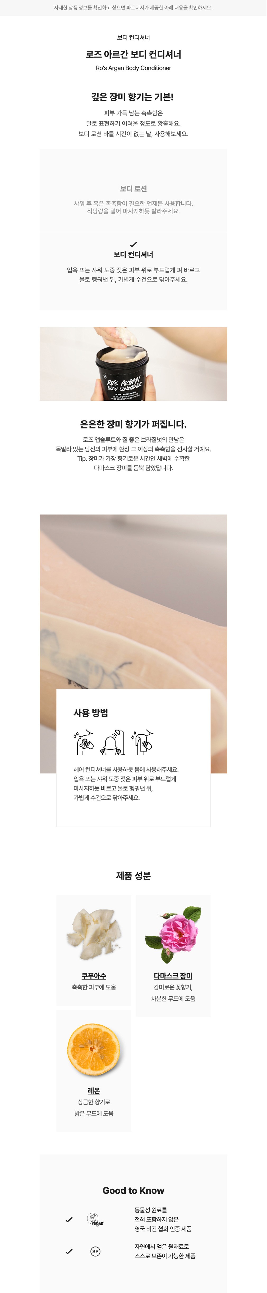 ・ 특징 : 바디 피부를 부드럽고 촉촉하게 가꾸어주는 컨디셔너입니다.