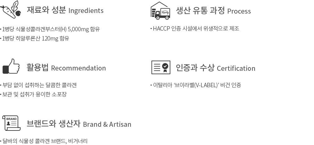 달바의 식물성 콜라겐 브랜드, 비거너리를 컬리에서 만나 보세요. 까다롭게 엄선한 성분으로 완성한 식물성 콜라겐입니다. 이번에 만나볼 제품은 한 병으로 간편하게 섭취할 수 있는 식물성 콜라겐 앰플인데요. 1병당 식물성콜라겐부스터를 5,000mg, 히알루론산을 120mg 함유하고 있답니다. 매일 1병씩만 먹어도 콜라겐과 히알루론산을 든든하게 섭취할 수 있지요. 샤인머스캣 혼합 농축액을 넣어 상큼하면서도 달콤한 맛으로 완성해 더욱 만족스럽답니다. 외출 시 하나씩 챙기기에도 참 좋을 거예요.