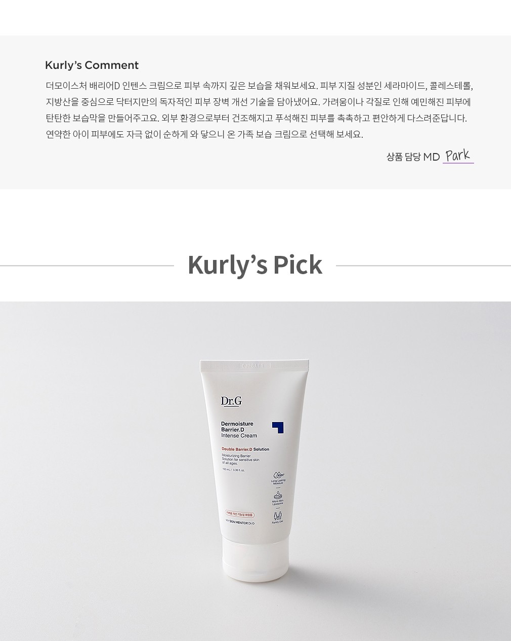 활용팁 ・ 닥터지의 더모이스처 배리어D 인텐스 로션과 함께 사용하여 보습 루틴을 만들어 보세요.