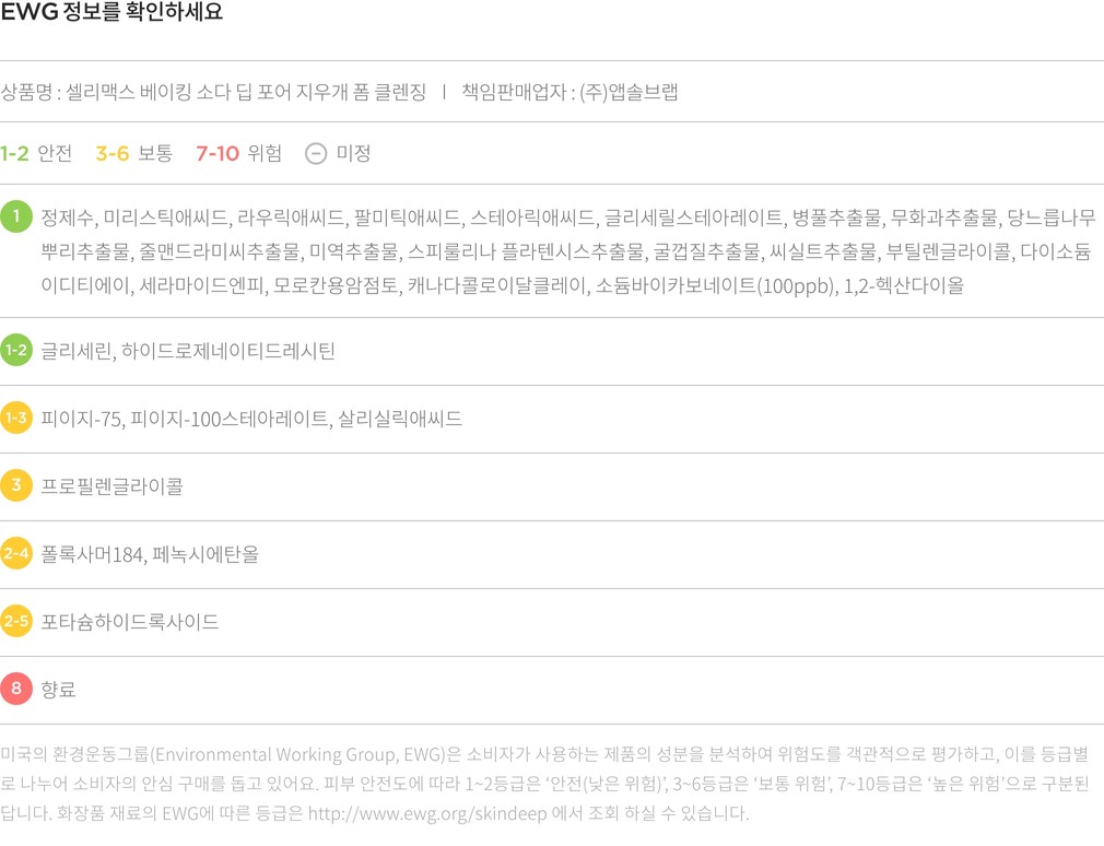 ・ 특징 : 베이킹 소다 성분으로 모공 속 노폐물을 말끔하게 제거하는 클렌저입니다.