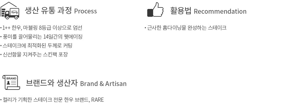 구입 전 참고사항 ・ 손질 방법에 따라 모양이나 크기가 조금씩 다를 수 있어요. 두 덩이로 나뉘어 배송될 수 있으니, 안정적인 모양을 원한다면 RARE의 다른 부위를 추천해요.