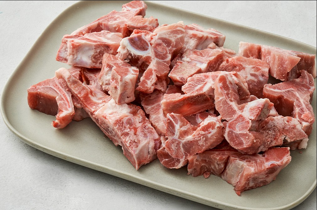 1. 등뼈를 찬물에 담가 핏물을 빼주는 과정을 3번 정도 반복하세요.