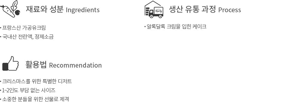 - 계란, 우유, 대두, 밀 함유 - 본 제품은 메밀, 땅콩, 고등어, 게, 새우, 돼지고기, 복숭아, 토마토, 아황산류, 호두, 닭고기, 쇠고기, 오징어, 조개류(굴, 전복, 홍합 포함), 잣을 사용한 제품과 같은 제조시설에서 제조하고 있습니다.