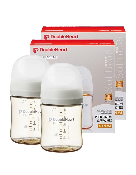 [더블하트] 3세대 160ml 모먼트 트윈팩 (젖병2개/노꼭지) 1+1