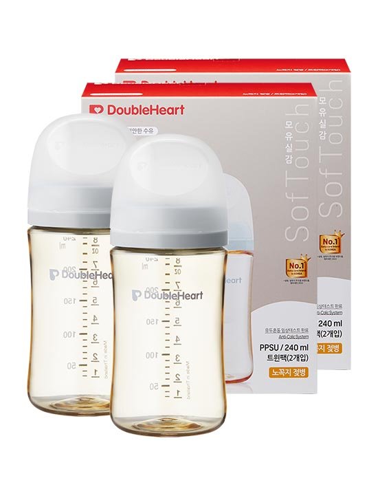 [더블하트] 3세대 240ml 모먼트 트윈팩 (젖병2개/노꼭지) 1+1